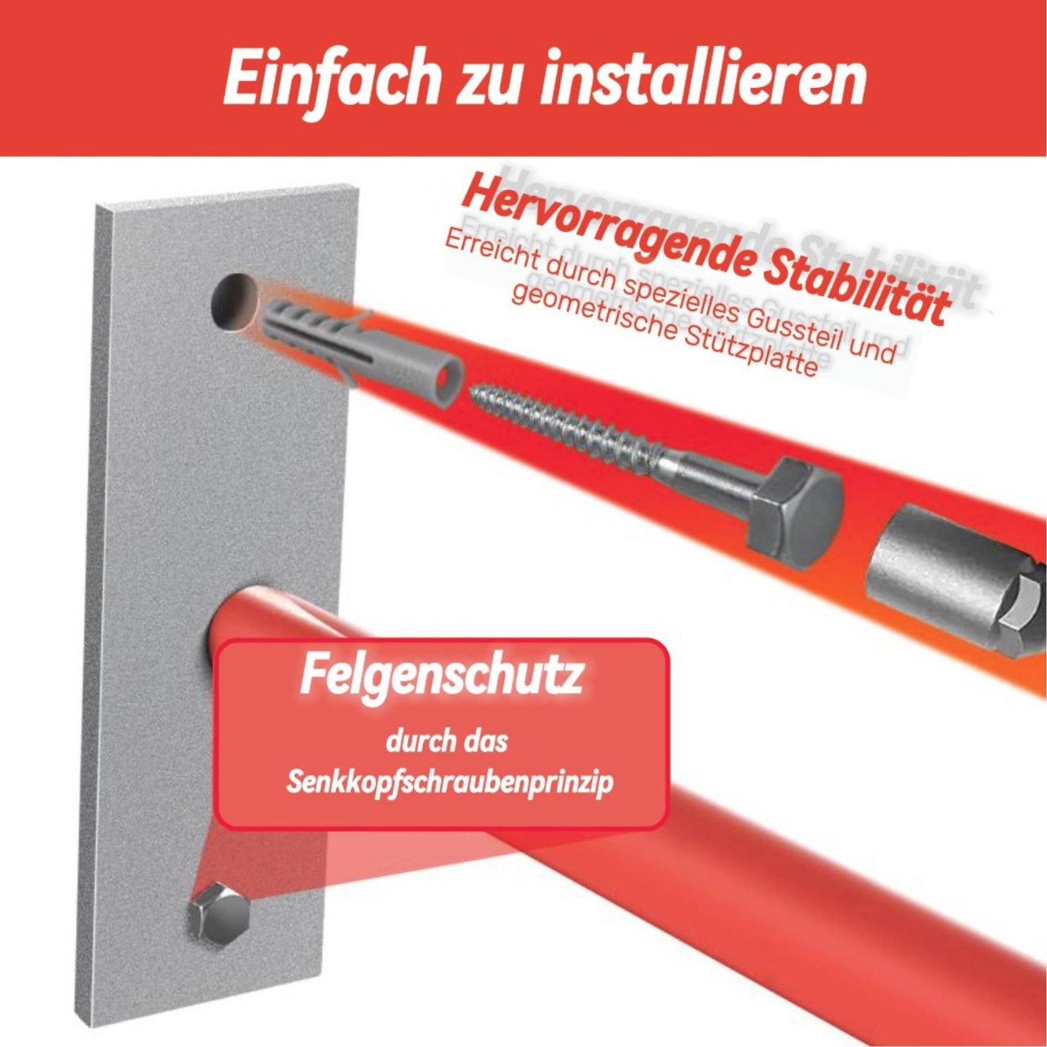 Mit den Reifen-Wandhalterungen lagern Sie Ihre Reifen sicher, ordentlich und platzsparend. Perfekt geeignet für Garage, Keller oder Werkstatt. Die stabile Konstruktion sorgt für eine zuverlässige Aufbewahrung Ihrer Sommer- oder Winterreifen und schützt diese vor unnötiger Belastung.
